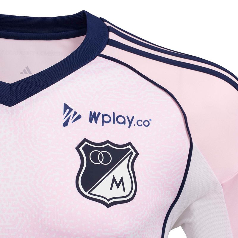 Tercera Camiseta Millonarios FC para Hombre, Adidas presenta su nueva camiseta rosada, una propuesta que combina frescura, modernidad y la inconfundible pasión azul. Este diseño único rompe esquemas sin perder la esencia embajadora, reflejando el espíritu innovador del club y su conexión con una hinchada que vibra con cada color. Es una piel que representa evolución, identidad y orgullo capitalino.